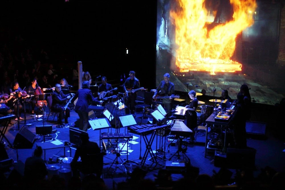 The film was performed live at Sheffield’s celebrated Crucible Theatre at Doc/Fest 2013. The audience in attendance at The Crucible theatre were given strips of blue plastic through which to view the film, to replicate the experience of the steelworkers who wore glasses with blue lenses to protect their eyes from the glare of the molten metal.